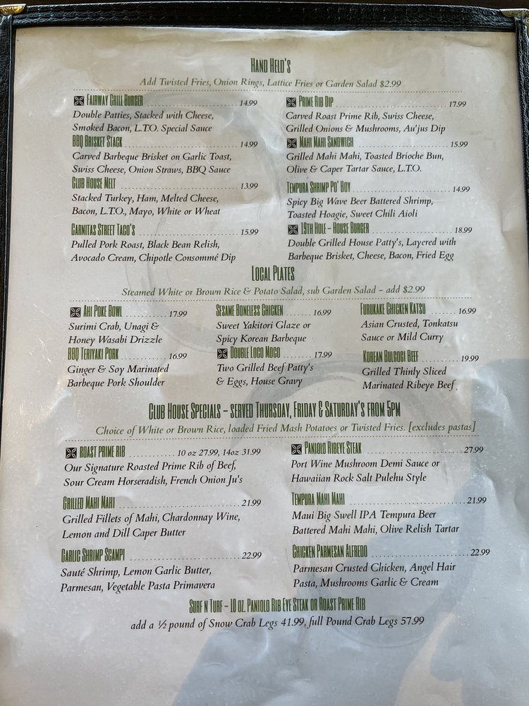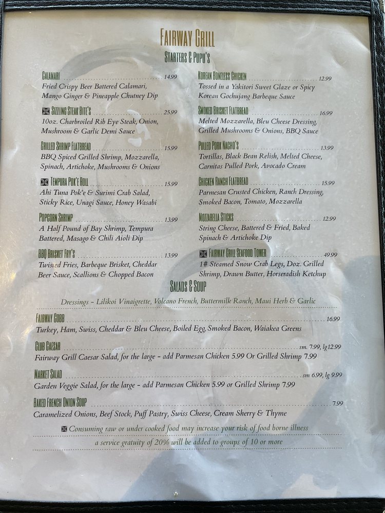 Fairway Grill Menu
